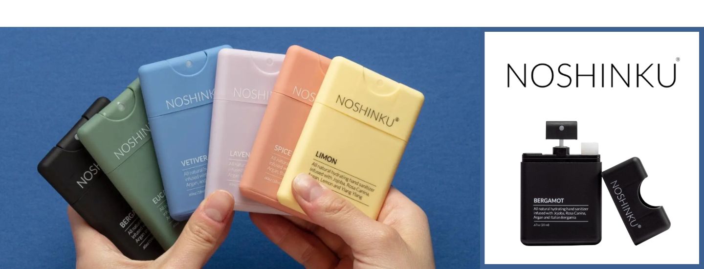 Award winning rejuvenating hand sanitizer that does it all: cleans, moisturizes, & refreshes hands, without synthetics. Meticulously crafted, natural fragrances, bottled in sustainable & refillable sprayers, that you'll find excuses to keep spritzing. NOSHINKU was founded on the belief that life is lived in the details and that every moment, no matter how small, impacts one's quality of life. We design personal care products that combine functional utility with stylish aesthetics that make up the details of a life well-lived.